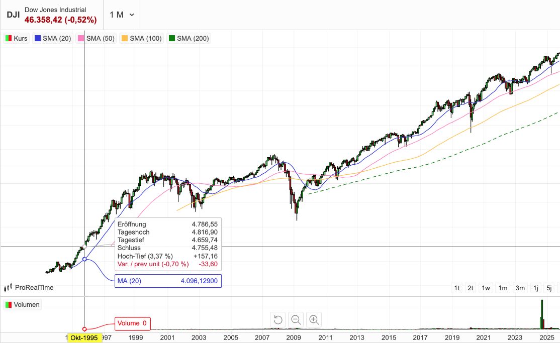 Werthaltig seit 1896 trifft es wohl ganz gut, denn seit diesem Zeitraum hat man mit einer Veranlagung im Durschnitt eine jährliche Rendite von 5,8% oder sogar 7,5% verdient, je nachdem ob man den Kursindex oder den DJITR also Total Return Index inkl. reinvestierter Dividenden zur Grundlage nimmt. https://shorturl.at/nB7CS