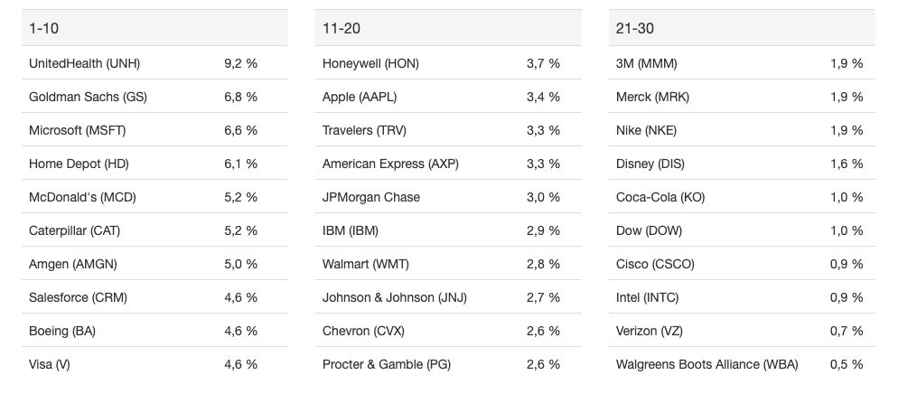 Aber das Besondere am "Dow Jones" - wie er seit jeher auch liebevoll abgekürzt wird und auf seinen Erfinder Charles Dow, dem Gründer von DowJones&Company verweist - ist seine schiere Anzahl von Besonderheiten. Skurill etwa die Tatsache, dass der Hashtag#DJIA ein preisgewichteter Index ist, der 30 Blue Chips, aber nicht unbedingt die größten, börsennotierten Unternehmen im Allgemeinen mit Sitz in den USA abbildet.