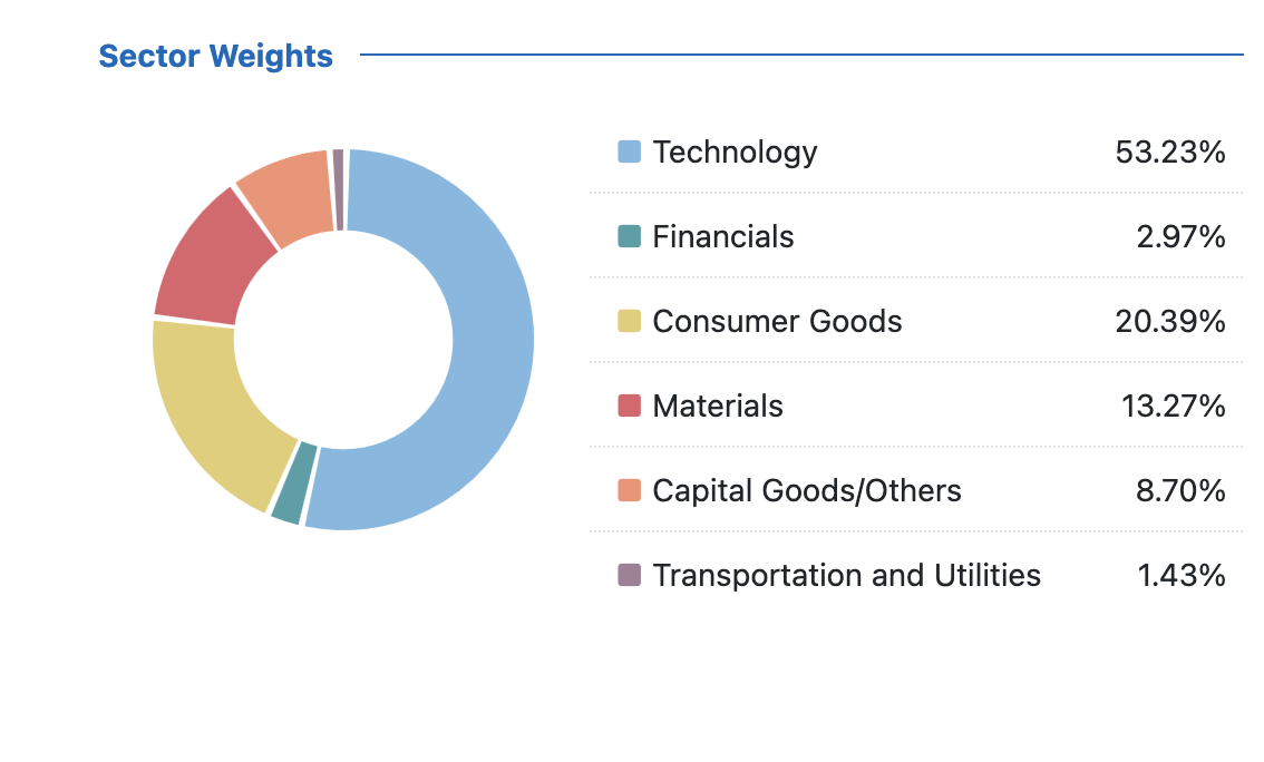 Im Gegensatz zumTOPIX in dem alle rund 1700 an der Börse gelisteten jap. Unternehmen vertreten sind, finden sich imNIKKEI lediglich die liquidesten 225 Unternehmen, dafür werden Branchentrends viel schneller abgebildet, wie die aktuelle Gewichtung des Technologiesektors von über 53% (!!) im Gegensatz zu 13% im TOPIX vor Augen führt.