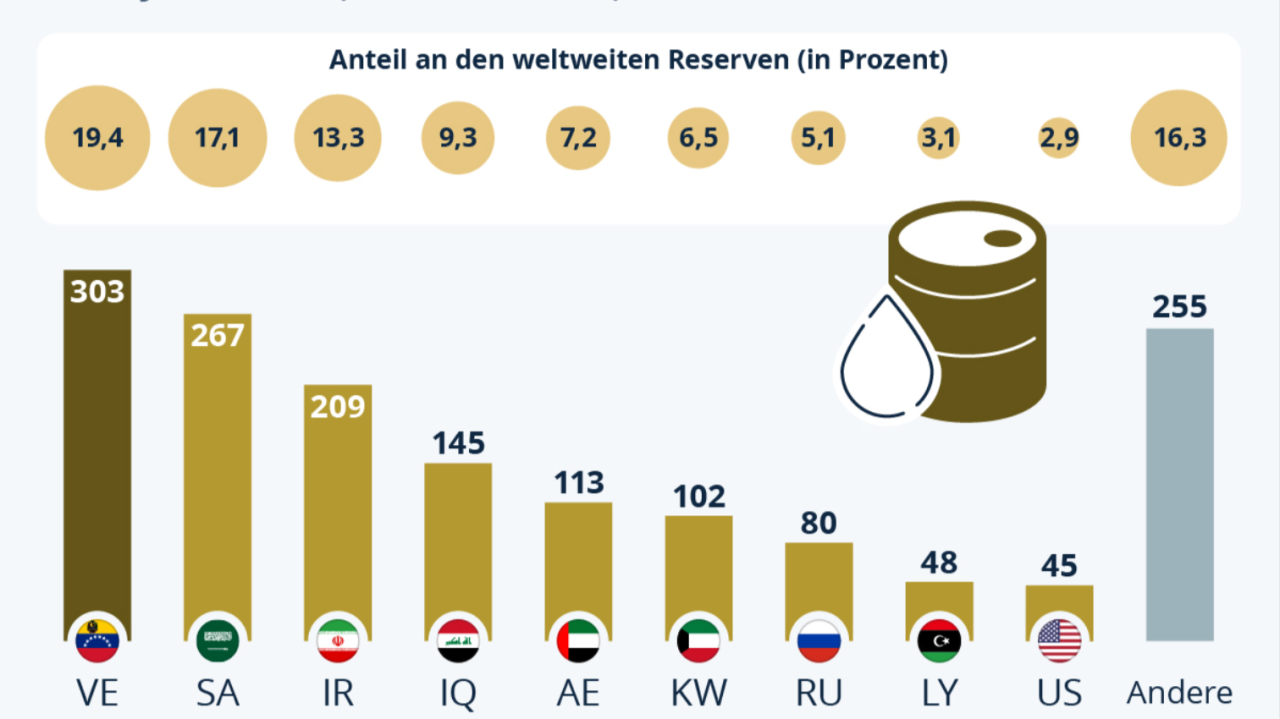 Die Aussage überraschte nur auf den ersten Blick, denn auch wenn Venezuela mit geschätzen 300 Mrd. Barrel die weltweit größten Reserven (noch vor Saudi-Arabien) aufweist, ist eine gewinnbringende Förderung ein anderes Thema. Bis zu 90% der Vorkommen befinden sich im sogenannten Orinoco-Becken, dass in etwa die Größe Kroatiens aufweist. Nur zwischen 250 und 1200 Meter unter der Erdoberfläche liegt dieser Erdölgürtel. Doch das Schwer- und Schwerstöl ist zähflüssig und hat einen hohen Schwefel- und Metallgehalt. Anders als das leicht zu fördernde amerikanische Fracking-Öl ist seine Gewinnung aufwendig und deshalb teuer. https://2cm.es/1i2nN